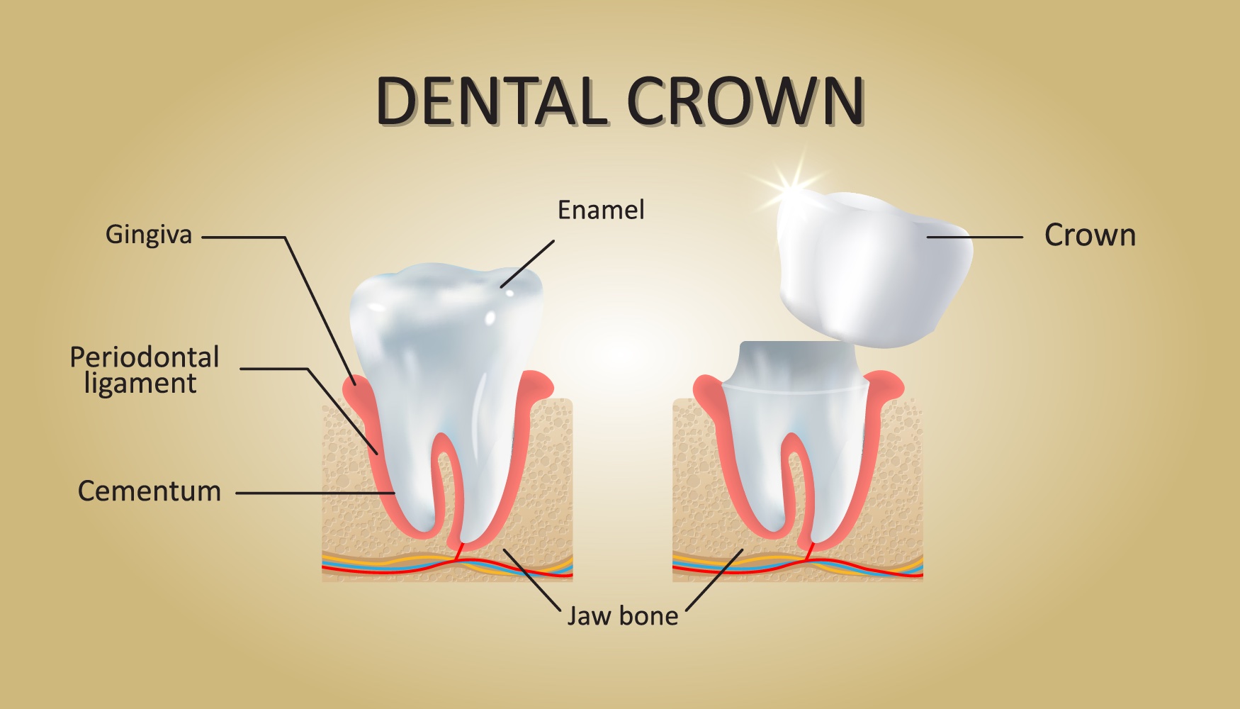 A crown or cap is dental restoration that completely covers a tooth, it is often needed when a tooth requires a very large filling or is heavily broken down.